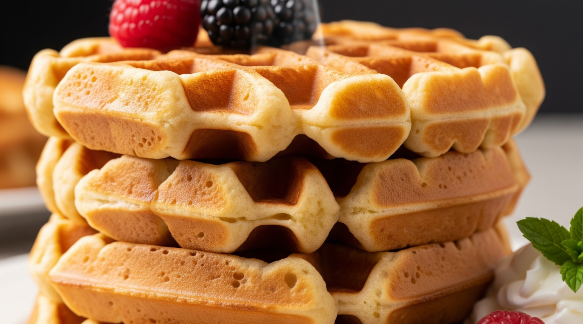 Light and fluffy waffles, mostly done the night before.